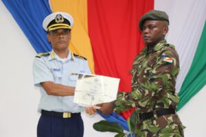 The ceremony was held this afternoon at the Military Training Support CentreAuditorium- Ile Perseverance, in the presence of Chairman of the Defence Comitee Honorable Clifford Andre,Chief of Defence Forces Brigadier Michael Rosette, senior SDF officers, and family members and friends of the new recruits.