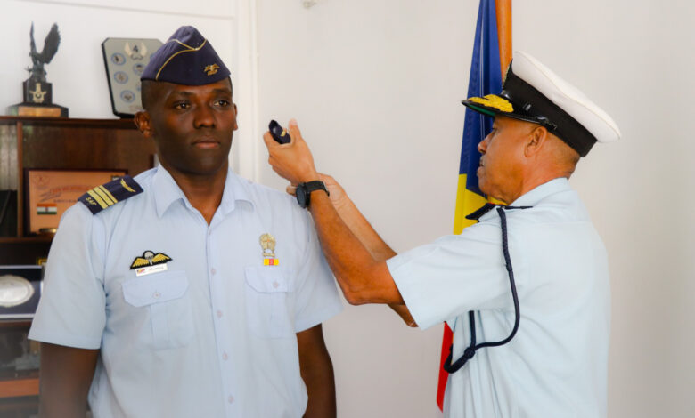 Present to witness the promotion was the Chief of Staff, Senior Staff Officer, Training Officer and Officers from Seychelles Air Force.