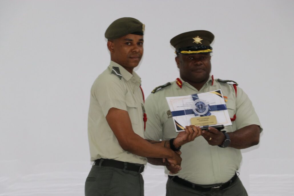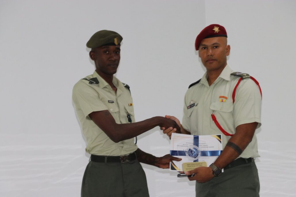 L/Cpl Jean-Luc Rose from the Military Medical Centre was the best performer in Academic Studies, while L/Cpl Rian Augustin from the Military Training & Support Centre was the best at Practical Studies.