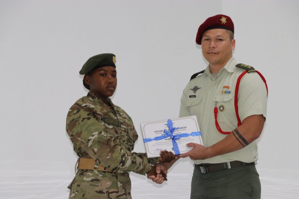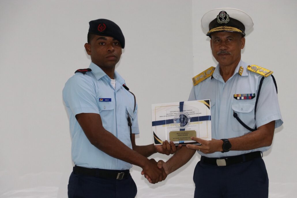 The best Overall Performer in the leadership course was L/ Cpl Russell Belle from Seychelles Coast Guard.