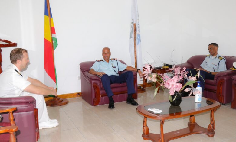 Lieutenant Commander Matthew Kohlmann the operation and security cooperation chief for Mauritius and Seychelles made a farewell call on the Chief of Defence Forces, Brigadier Michael Rosette at SDF Headquarters, Bel Eau.
