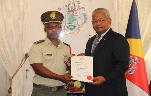“I wish to congratulate you on your achievement. I know that you have the knowledge and ability to serve the Seychelles Defence Forces. I wish you success as you take on the new responsibility,” said the President.