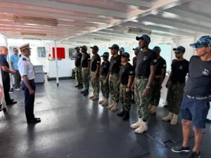 Seychelles Coast Guard Auxiliary Ship Saya De Malha returned back to the Republic over the weekend, after herscheduled dry docking and maintenance. Saya de Malha left Seychelles in April 2024 to participate in Exercise Panpanguein Reunion Island, and from there, she headed to Mauritius for dry docking at Chantier Naval de l’Océan Indien Ltd (CNOI).