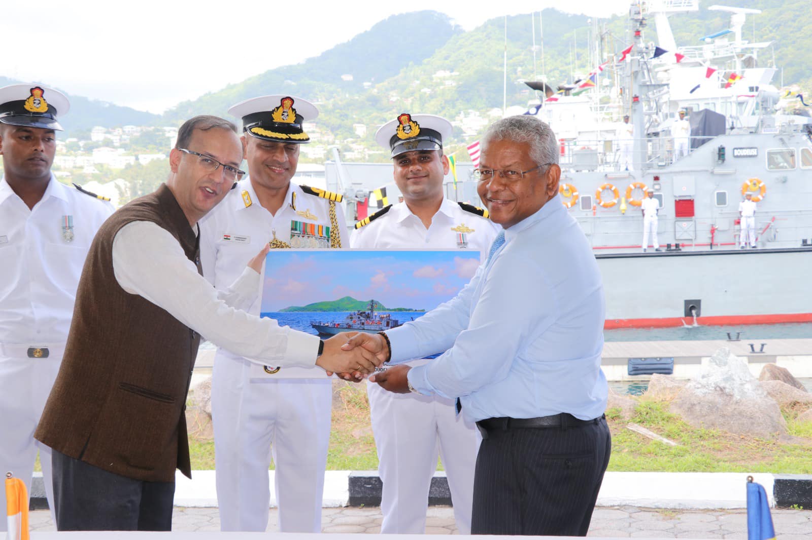 A donation from the Indian Government, Patrol Boat Boudeuse, which will replace the PB Hermes, is a Fast Interceptor Craft that has been specially designed for Coastal Defence duties, patrol and surveillance.