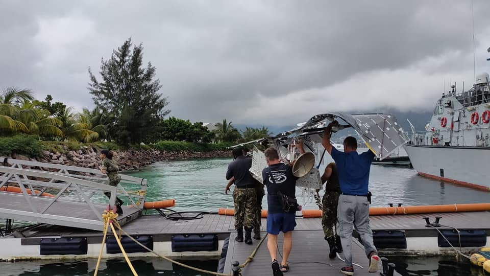 The joint effort between the scientific team, remotely controlling the balloon from Madagascar and the USA, E.R.T. and the Seychelles Coast Guard allowed for a swift recovery of the equipment on-board the Patrol boat around 0130hrs, at around 3 nautical miles from Mahé. The successful recovery meant that loss of scientific equipment as well as a potential environmental pollution threat were avoided.